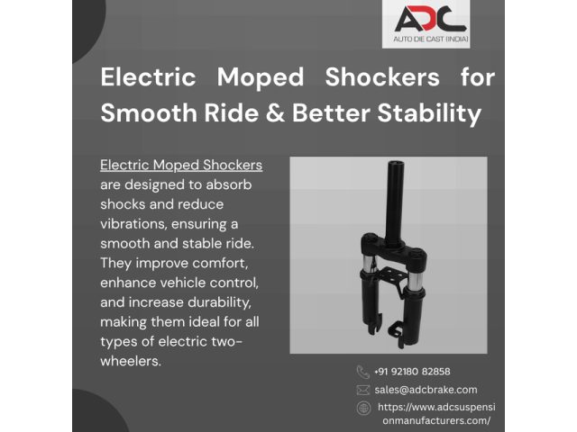 High-quality Electric Moped Shockers designed to improve ride comfort, control, and durability. These shockers effectively absorb road impact and reduce vibrations, ensuring a smooth and safe riding experience on all types of roads. Suitable for various electric two-wheelers, they offer strong performance, long life, and reliable suspension support for daily use. Ideal for enhancing vehicle stability and overall riding comfort.