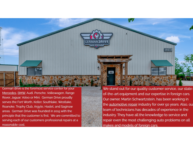 German Drive is a trusted foreign car repair Fort Worth specialist, established in 2015. We provide expert European auto repair for top brands like Audi, BMW, Mercedes-Benz, and Porsche, offering reliable maintenance and advanced repairs. With skilled technicians and a commitment to quality, we ensure your vehicle receives the best care and performance.