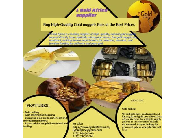 Dear Sir/Madam WE ARE EGOLD Africa MINING COMPANY IN SOUTH AFRICA AND KAMPALA, UGANDA WE ARE BASED IN KAMPALA UGANDA, AND WE HAVE A LARGE QUANTITY OF GOLD BARS AND NUGGETS READY FOR EXPORT WE ARE LOOKING FOR HONEST, SINCERE, AND SERIOUS BUYERS, AND WE ARE READY TO SIGN A LONG-TERM CONTRACT AGREEMENT WITH BUYERS WITH POSSIBLE ROLL AND EXTENSION... PRODUCTS DESCRIPTION; COMMODITY: GOLD BARS / NUGGETS AND ROUGH DIAMOND QUALITY ; 23+ Carats Purity; 99% AN ABOVE Quantity: 500 kg available monthly Country of Origin: UGANDA AND CONGO Port of Loading ... Kampala, Uganda CONTACTS US ; CALL ;+27 69 474 0610
