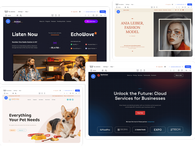 With Weblium’s 300+ professionally designed templates, you can launch a site that looks like it was made by top designers — in just a few clicks.